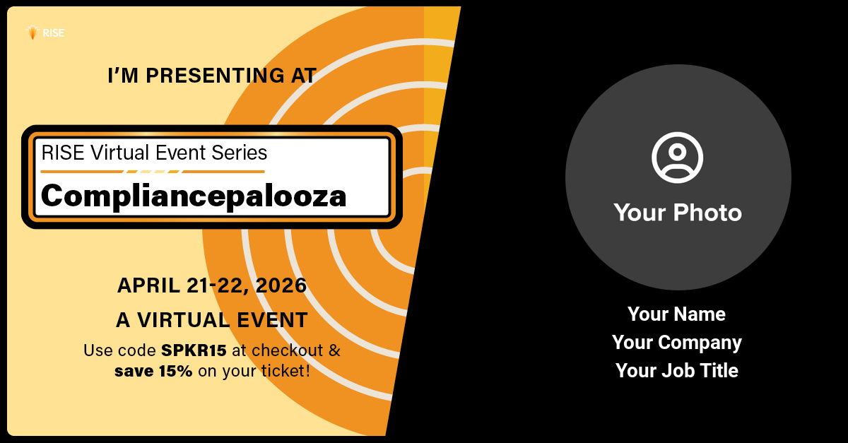If you're confirmed to attend CompliancePalooza, you've made the right decision. Help us spread the word, inspire your peers, and build credibility by sharing your participation with your LinkedIn network.