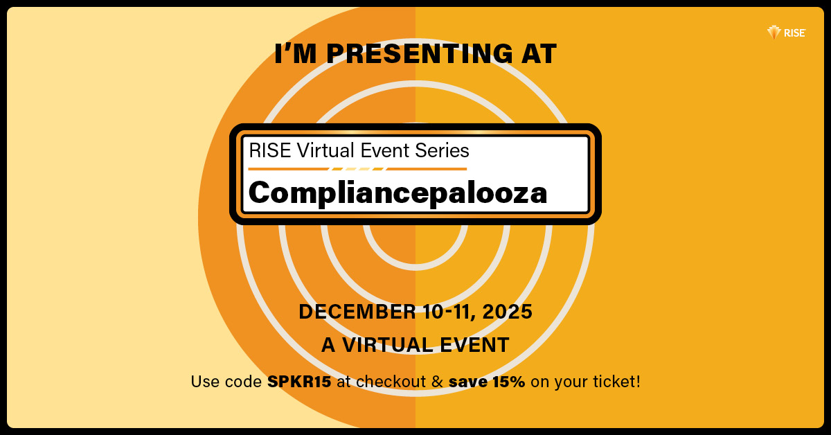 If you're confirmed to attend CompliancePalooza, you've made the right decision. Help us spread the word, inspire your peers, and build credibility by sharing your participation with your LinkedIn network.